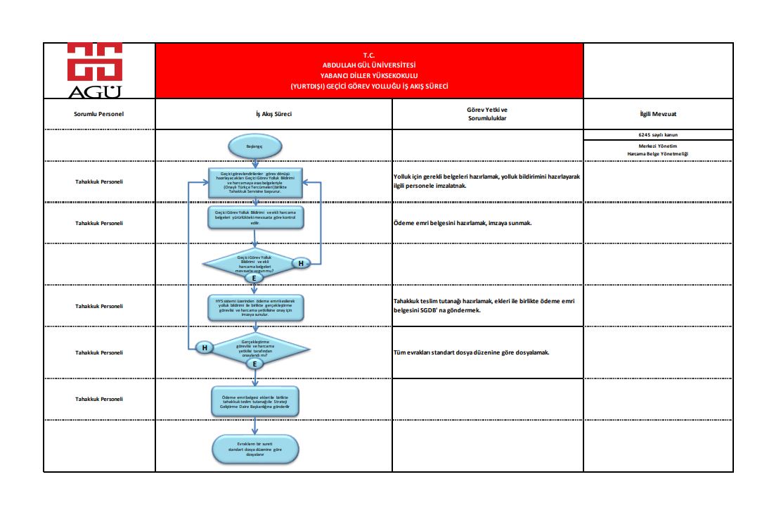 (Yurtdışı) Geçici Görev Yolluğu İş Akış Süreci