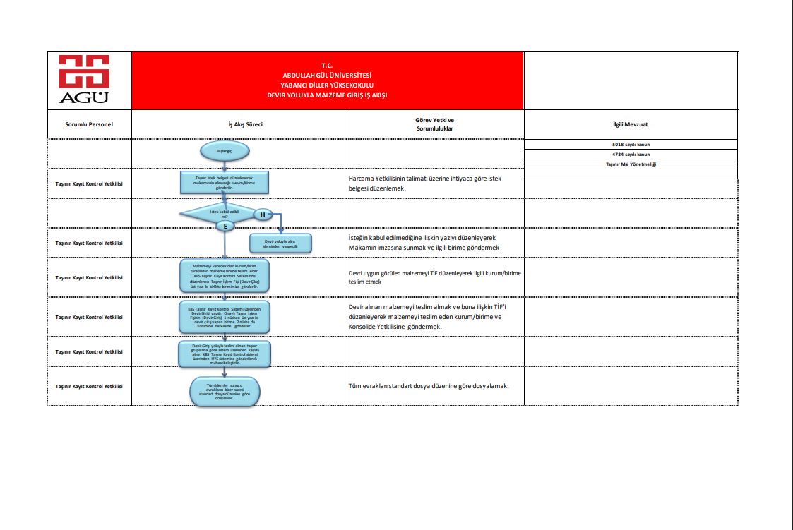 Devir Yoluyla Malzeme Giriş İş Akış Süreci