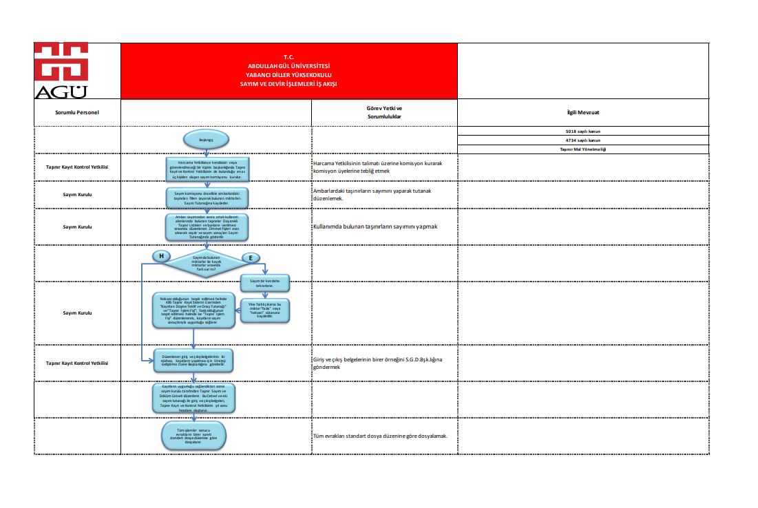 Sayım ve Devir İşlemleri İş Akış Süreci