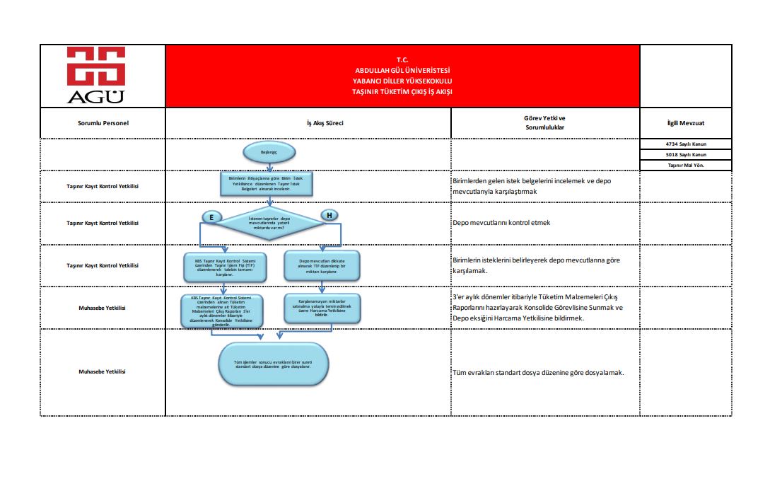 Taşınır Tüketim Çıkış İş Akış Süreci